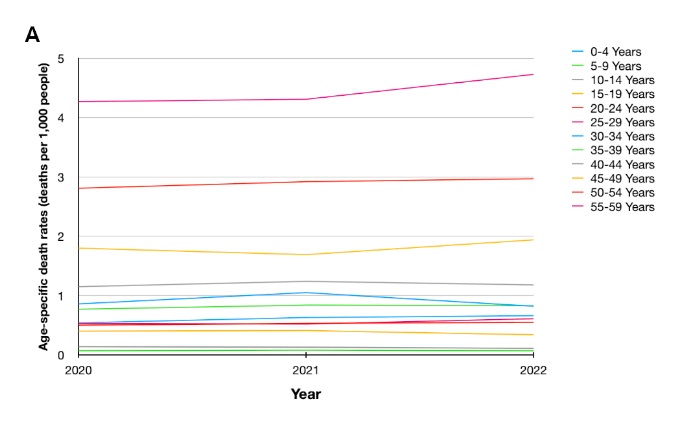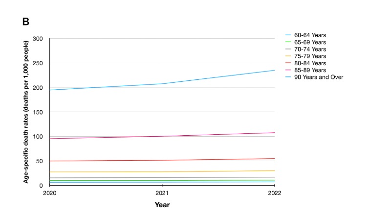 Stats NZ ชี้แจงว่า แม้อายุขัยของชาวนิวซีแลนด์จะเพิ่มขึ้น แต่อัตราการเสียชีวิตของผู้สูงอายุจะมากกว่ากลุ่มประชากรหนุ่มสาว เนื่องจากการขยายตัวของสัดส่วนประชากรสูงวัยในประเทศ โดยปี 2022 ชาวนิวซีแลนด์ที่เสียชีวิตถึง 4 จาก 5 รายที่เป็นผู้ที่มีอายุมากกว่า 65 ปี โดยครึ่งหนึ่งมีอายุมากกว่า 80 ปี