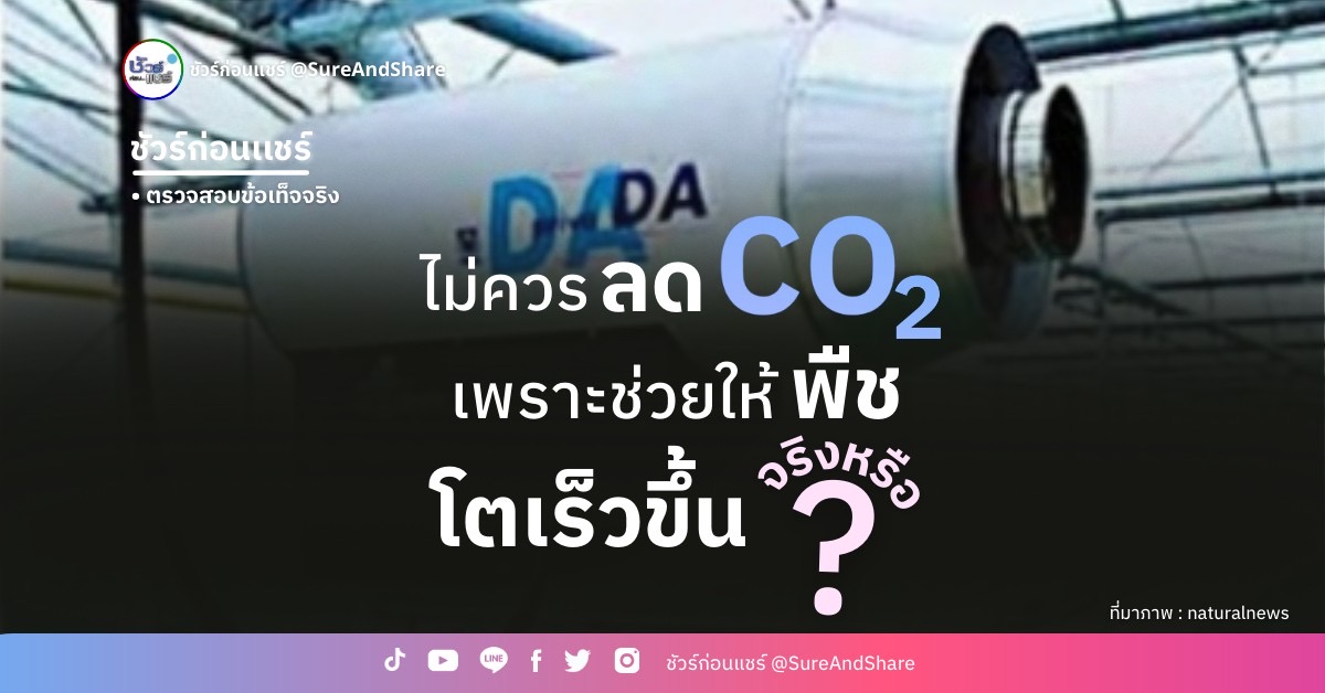 มีข้อมูลบิดเบือนเผยแพร่ทาง Facebook และ X (Twitter) ในต่างประเทศ ที่อ้างงานวิจัยที่พบว่าแก๊สคาร์บอนไดออกไซด์ (CO2) มีความสำคัญต่อการเจริญเติบโตของพืชหลายชนิด เห็นได้จากกลุ่มผู้ปลูกพืชในเรือนกระจก ที่นิยมใช้เครื่องกำเนิดก๊าซคาร์บอนไดออกไซด์ (CO2 Generators) เพื่อเร่งการเจริญเติบโตของพืช การลดปริมาณ CO2 ในธรรมชาติจะทำให้ผลผลิตทางการเกษตรลดลง และทำให้เกิดปัญหาการขาดแคลนอาหารไปทั่วโลก