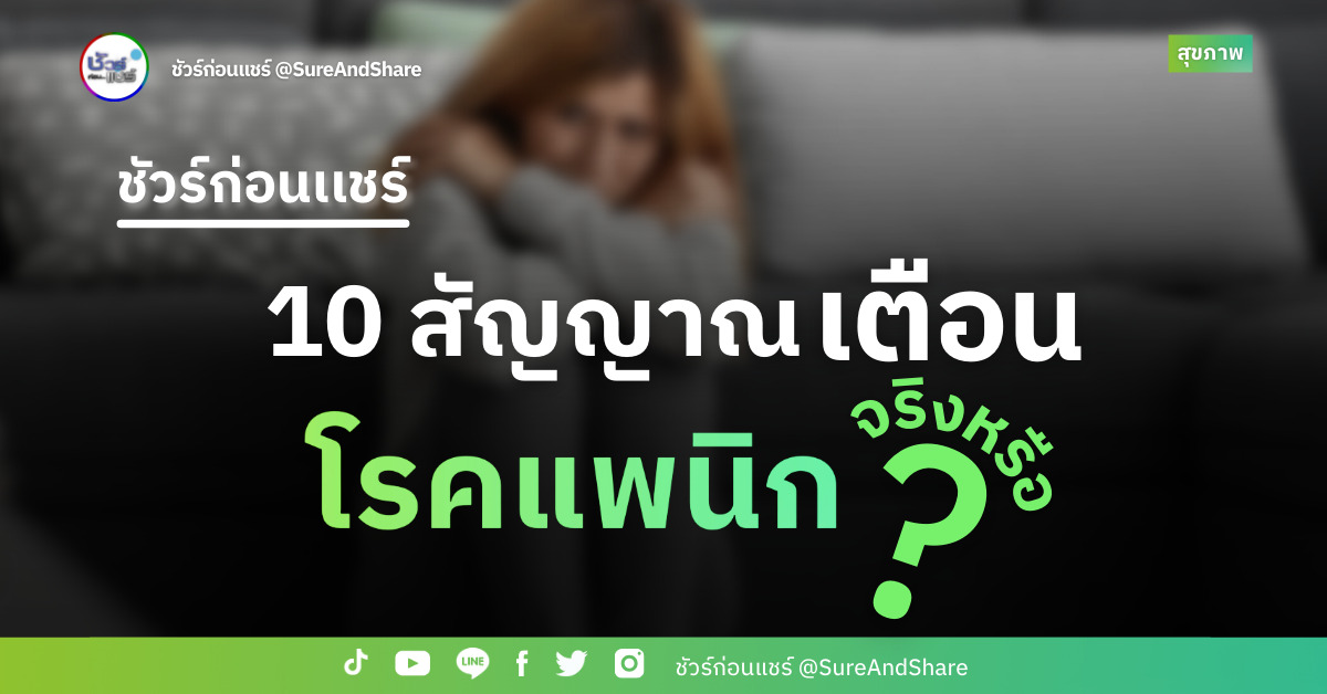 บนสื่อสังคมออนไลน์มีการแชร์เตือน 10 สัญญาณอาการโรคแพนิกที่คุณอาจไม่รู้ เช่น เสียขวัญกะทันหัน ใจสั่น หายใจถี่ คลื่นไส้หรือปวดท้อง