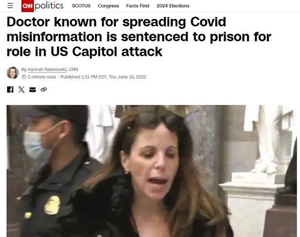 ผู้ที่มีพฤติกรรมแบบเดียวกันนี้ยังรวมถึง ซีโมน โกลด์ ผู้ก่อตั้ง America’s Frontline Doctors องค์กรที่ต่อต้านนโยบายป้องกันโควิด-19 ของรัฐบาลสหรัฐฯ ซึ่งต่อมาเธอถูกศาลตัดสินจำคุกเป็นเวลา 60 วัน ในข้อหาบุกรุกอาคารรัฐสภาสหรัฐเมื่อวันที่ 6 มกราคมปี 2021