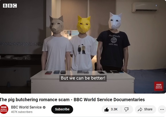 เมื่อเดือนเมษายน 2023 BBC World Service ได้เผยแพร่ The Pig Butchering Romance Scam สารคดีเปิดโปงขบวนการ Romance Scam ผ่านมุมมองของบุคคล 3 ฝ่าย ได้แก่