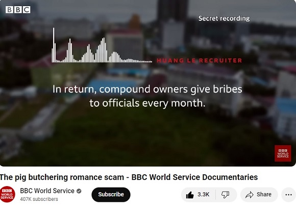 ทีมงานสารคดีของ BBC World Service ได้ตรวจสอบเบาะแสจนเชื่อว่า กาสิโนแห่งหนึ่งในประเทศกัมพูชาถูกใช้เป็นสถานที่ดำเนินงานของแก๊ง Romance Scam ข้ามชาติ และยังมีการล่อลวงแรงงานราคาถูกมาทำงานผิดกฎหมายอย่างไม่เต็มใจ