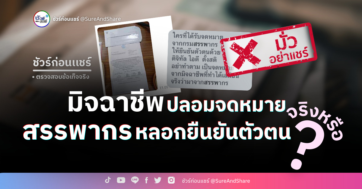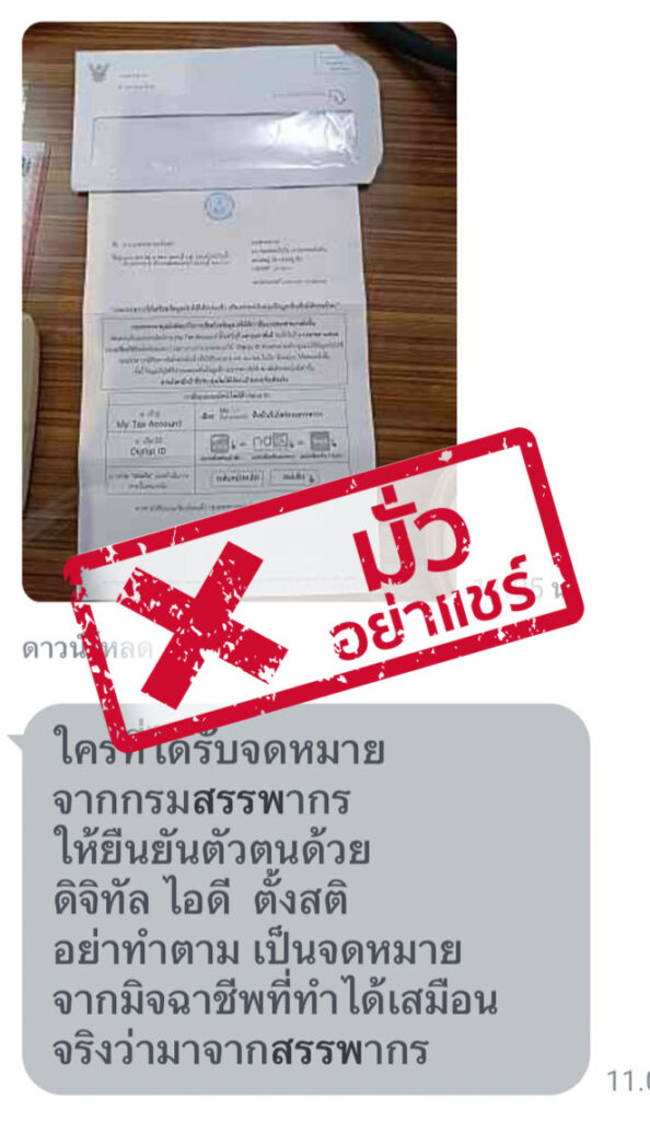 ตามที่มีการแชร์เตือนมิจฉาชีพปลอมจดหมายสรรพากร หลอกยืนยันตัวตน นั้น