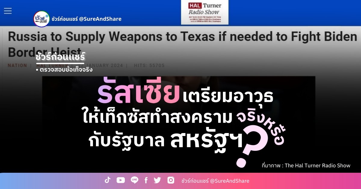 เนื้อหาโปรยข่าวระบุว่า “รัสเซียอาจส่งอาวุธหนักไปให้เท็กซัสป้องกันตนเองและปกป้องเขตแดนของตน เพื่อต่อต้านนโยบายของไบเดนที่บังคับให้เท็กซัสกลับมาเปิดพรมแดนให้ผู้อพยพผิดกฎหมายเข้ามาอีกครั้ง”