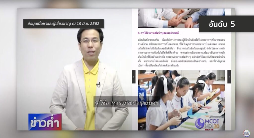ตรวจสอบข้อเท็จจริงกับ : ดร.สุดาทิพย์ แซ่ตั้น อาจารย์ คณะอุตสาหกรรมเกษตร ม.เกษตรศาสตร์ ศ.นพ.นิพนธ์ พวงวรินทร์ ราชบัณฑิต แพทย์ผู้เชี่ยวชาญประสาทวิทยา