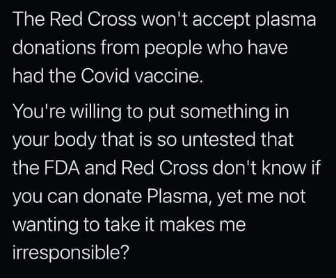 อย่างไรก็ดี การอ้างว่าสภากาชาดสหรัฐอเมริกาเคยปฏิเสธการรับบริจาคพลาสม่าจากผู้ฉีดวัคซีนโควิด-19 เพราะเลือดผู้ฉีดวัคซีนไม่ปลอดภัยเป็นการกล่าวอ้างที่ไม่เป็นความจริง