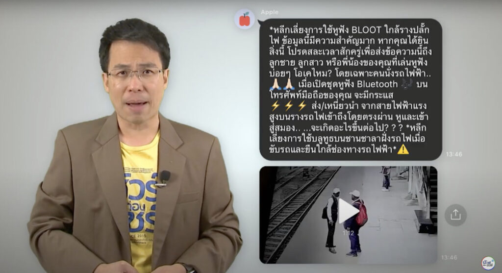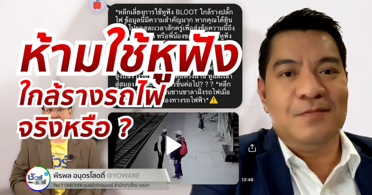 28 มีนาคม 2567 – ตามที่มีการแชร์คลิปพร้อมคำเตือนคนที่นั่งรถไฟฟ้า ว่า หลีกเลี่ยงการใช้หูฟังบลูทูทใกล้รางรถไฟ เพราะอาจเป็นการเหนี่ยวนำไฟฟ้าแรงสูงบนรางรถไฟ เข้ามาช็อตผ่านหูสู่สมองได้นั้น