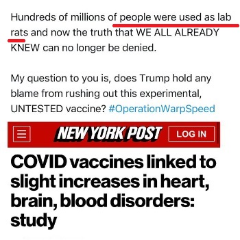 มีข้อมูลสร้างความเข้าใจผิดเผยแพร่ทางสื่อสังคมออนไลน์และเว็บไซต์ในต่างประเทศ โดยอ้างว่าผลสำรวจกลุ่มตัวอย่าง 99 ล้านราย พบอาการข้างเคียงจากผู้ฉีดวัคซีนโควิด-19 หลากหลายชนิด แสดงให้เป็นว่าวัคซีนโควิด-19 ไม่ได้ผ่านการตรวจสอบความปลอดภัยอย่างเพียงพอก่อนได้รับการอนุมัติ