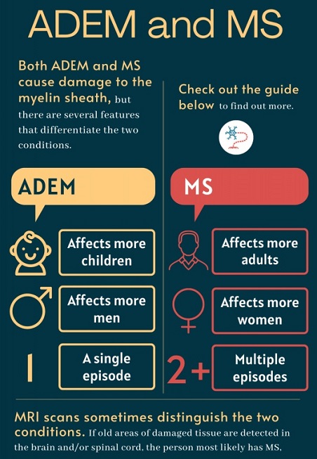 โรคสมองอักเสบหลายตำแหน่งเฉียบพลันหรือ ADEM คือโรคที่ก่อให้เกิดการอักเสบที่สมองและเส้นประสาทไขสันหลัง มักพบในเด็กที่ป่วยจากโรคติดเชื้อ แม้จะมีอัตราการเสียชีวิตสูงถึง 5% แต่ก็มีอัตราการหายป่วยโดยไม่มีอาการข้างเคียงที่ 50-75% และมีอัตราการรอดชีวิตที่ 70-90%