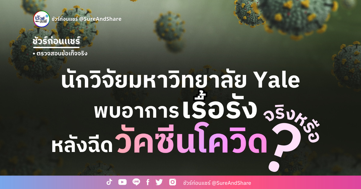 มีข้อมูลสร้างความเข้าใจผิดเผยแพร่ทางสื่อสังคมออนไลน์ในต่างประเทศ โดยอ้างว่านักวิจัยจากมหาวิทยาลัยเยลในสหรัฐอเมริกา ยืนยันการพบกลุ่มอาการ Post-Vaccination Syndrome ซึ่งเป็นอาการป่วยเรื้อรังที่เกิดกับผู้รับวัคซีนโควิด-19 ทั้งภาวะเหนื่อยง่ายและฟื้นตัวช้าจากการออกกำลัง (Exercise Intolerance) ภาวะอ่อนเพลียเหนื่อยล้าเรื้อรัง ภาวะสมองล้า อาการชา และ โรคของระบบประสาท