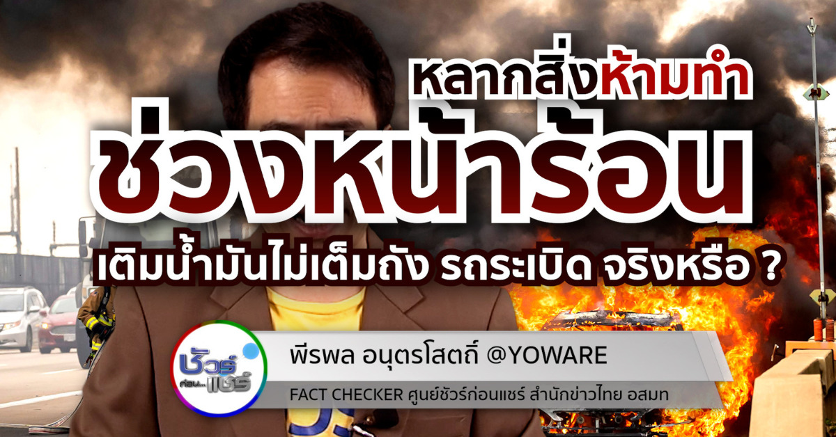 มีการแชร์คลิปเตือนว่าอากาศร้อนๆ จะต้องเติมน้ำมันให้เต็มถังไว้ก่อน เพราะรถที่น้ำมันหมดถังจะกลายเป็นระเบิดชั้นดีนั้น