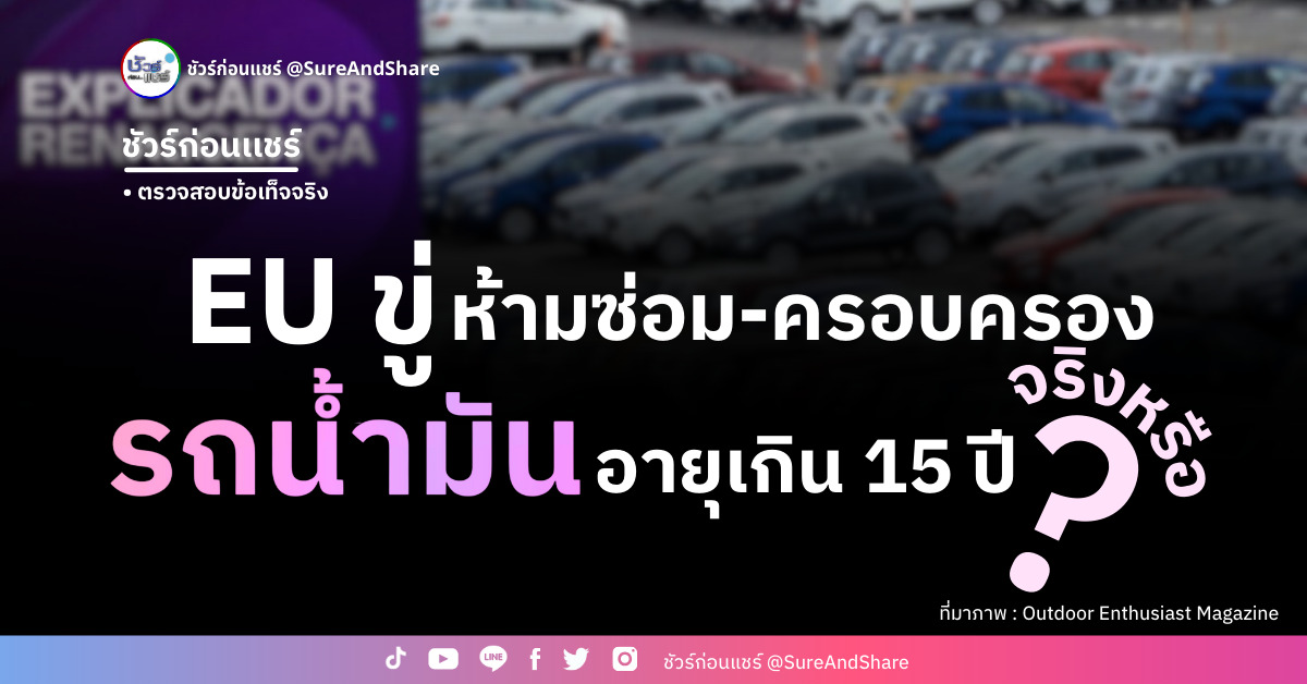 มีข้อมูลเท็จเผยแพร่ทางเว็บไซต์และสื่อสังคมออนไลน์ในต่างประเทศ โดยอ้างว่าสหภาพยุโรปหรือ EU เตรียมออกระเบียบห้ามประชาชนซ่อมหรือครอบครองรถยนต์เก่าที่มีอายุมากกว่า 15 ปี ถือเป็นการลิดรอนสิทธิประชาชนเพื่อการบรรลุเป้าหมายความเป็นกลางทางคาร์บอนภายในปี 2050