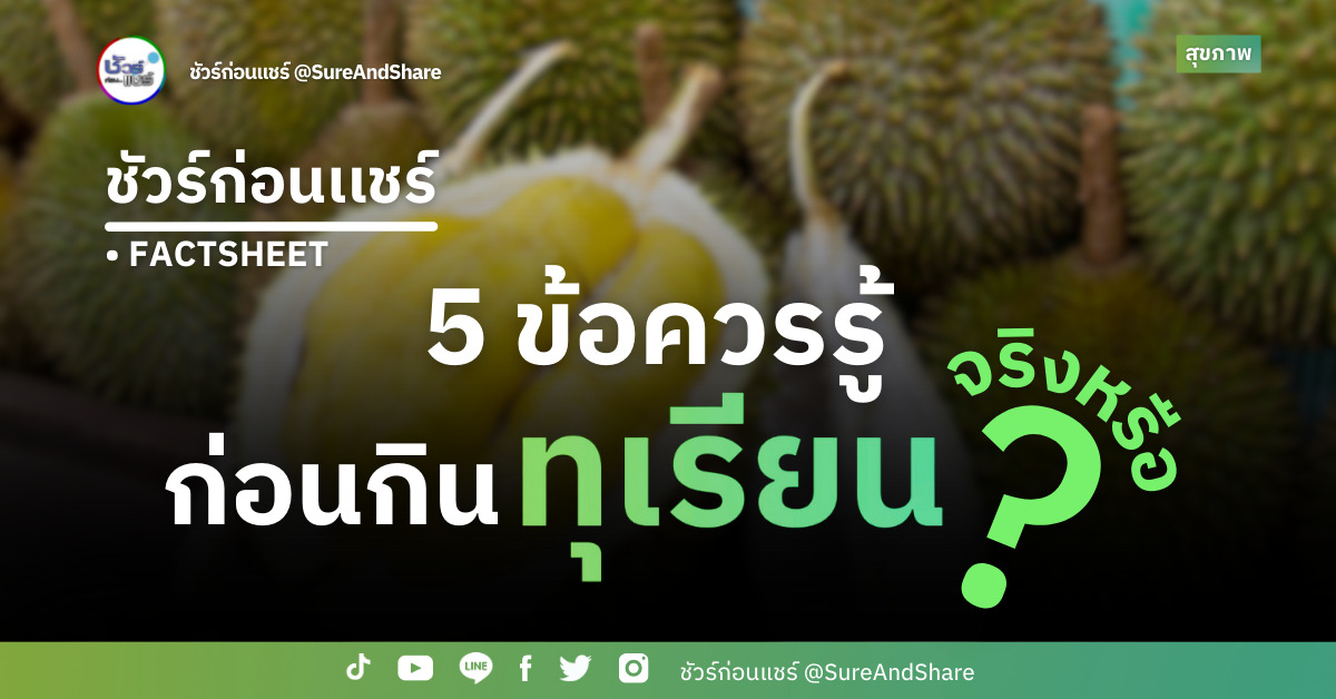 ดูเพิ่มเติมรายการ ชัวร์ก่อนแชร์ FACTSHEET : 5 ข้อควรรู้ ก่อนกินทุเรียน จริงหรือ ?