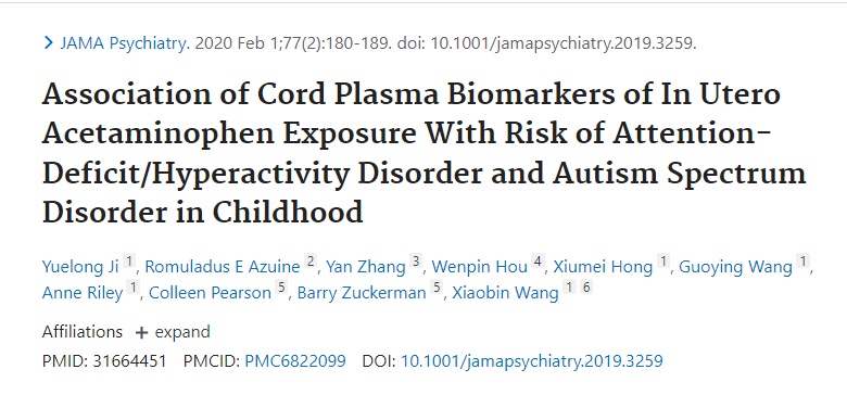 ปี 2019 วารสารการแพทย์ JAMA Psychiatry ได้ตีพิมพ์งานวิจัยที่ศึกษาปริมาณยาพาราเซตามอลในเลือดจากสายสะดือของสตรีที่กำลังใกล้คลอด