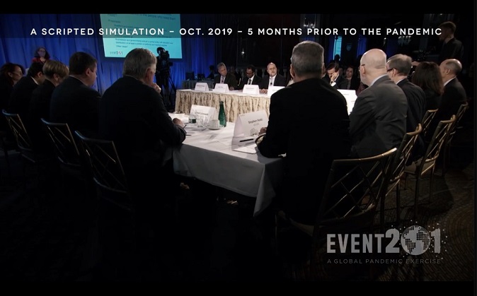 รวมถึงข้ออ้างที่ว่า มีการประชุมลับ ๆ โดยตัวแทนจากหน่วยงานภาครัฐและเอกชนชั้นนำของโลก เพื่อวางแผนการแพร่ระบาดของไวรัสโควิด-19 หรือที่รู้จักในชื่อ Event 201