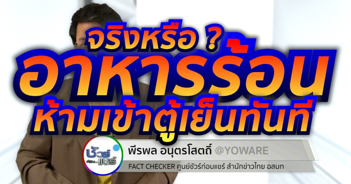 6 พฤษภาคม 2567 – บนโซเชียลแชร์เตือนว่า ห้ามนำอาหารร้อน ๆ แช่ตู้เย็นทันที ไม่ใช่ถึงขนาดจะทำให้ตู้เย็นพัง แต่จะทำให้เกิดความเสี่ยง ที่จะอาหารเป็นพิษ และท้องเสียได้