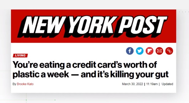 เมื่อปี 2022 หนังสือพิมพ์ New York Post รายงานข่าวว่า มนุษย์กำลังกินไมโครพลาสติกที่ปนเปื้อนในอาหาร ปริมาณเทียบเท่ากับบัตรเครดิตทุกสัปดาห์ ซึ่งข้อมูลดังกล่าวก็เคยรายงานโดยหน่วยงาน World Wide Fund for Nature เมื่อปี 2019 มาแล้วเช่นกัน