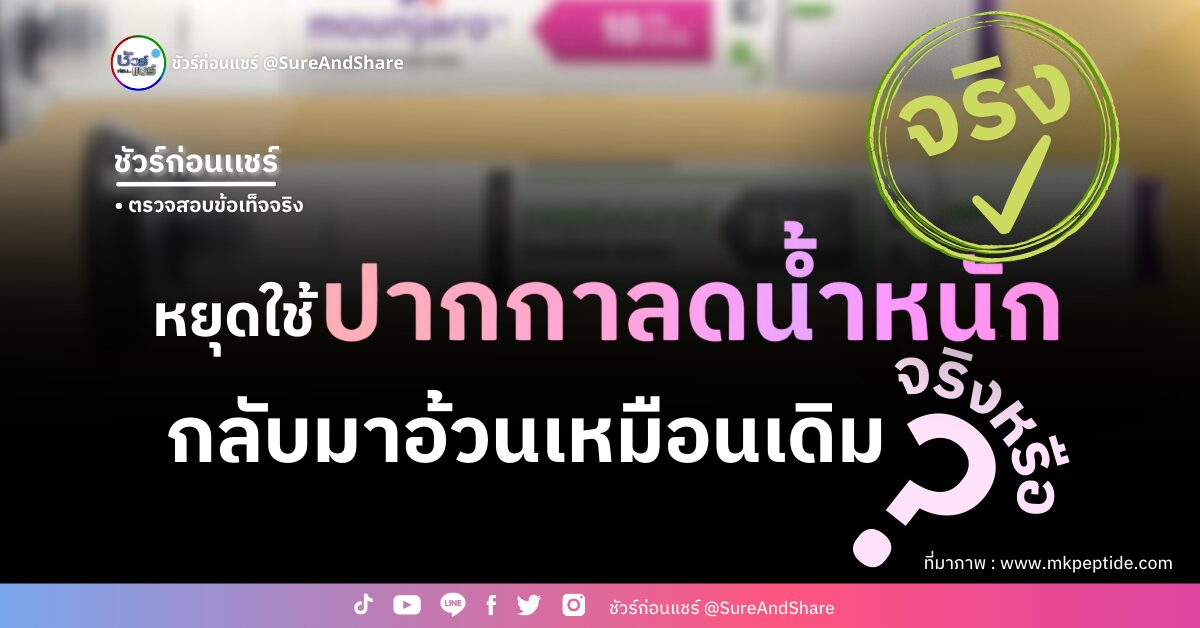 มีรายงานในต่างประเทศที่พบผู้ใช้ปากกาลดความอ้วนยี่ห้อ Zepbound (Tirzepatide) ของบริษัท Eli Lilly หลายราย ประสบปัญหาน้ำหนักตัวเพิ่มหลังหยุดใช้ยา