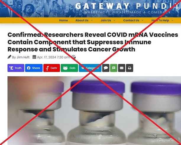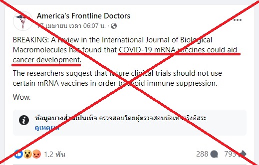 มีข้อมูลสร้างความเข้าใจผิดเผยแพร่ทางเว็บไซต์ในต่างประเทศ เมื่อมีการอ้างงานวิจัยที่พบว่าการดัดแปลง RNA ในวัคซีนโควิด-19 ชนิด mRNA มีส่วนกดภูมิคุ้มกันในร่างกายมนุษย์ และกระตุ้นการเกิดมะเร็งอีกด้วย