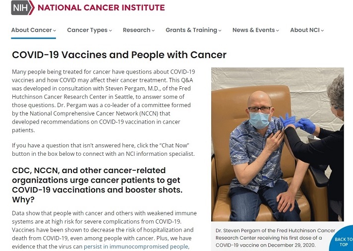 ข้อมูลจากสถาบันมะเร็งแห่งชาติสหรัฐอเมริกา (NCI) และสมาคมโรคมะเร็งแห่งสหรัฐอเมริกา (ACS) ไม่พบหลักฐานว่าวัคซีนโควิด-19 ชนิด mRNA ก่อให้เกิดมะเร็ง ทำให้ผู้ป่วยมะเร็งอาการแย่ลง หรือทำให้โรคมะเร็งกลับมากำเริบแต่อย่างใด
