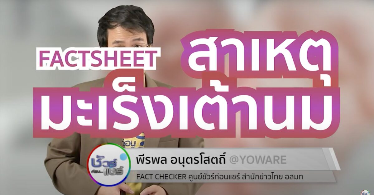 ศูนย์ชัวร์ก่อนแชร์ ตรวจสอบกับ รศ. นพ.ประกาศิต จิรัปปภา อาจารย์ประจำสาขาศัลยศาสตร์เต้านมและต่อมไร้ท่อ ภาควิชาศัลยศาสตร์ คณะแพทยศาสตร์โรงพยาบาลรามาธิบดี