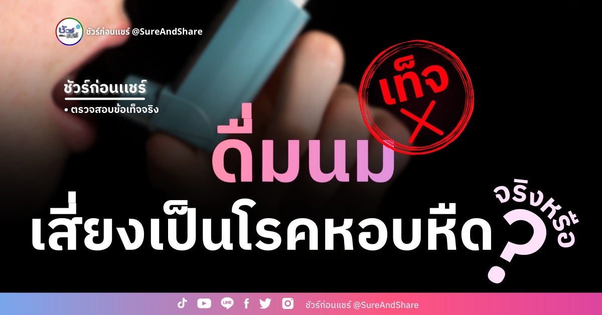 - ความเสี่ยงเป็นโรคหอบหืดจากการดื่มนม จะเกิดกับคนที่มีอาการแพ้อาหารจากนมอยู่แล้วเท่านั้น