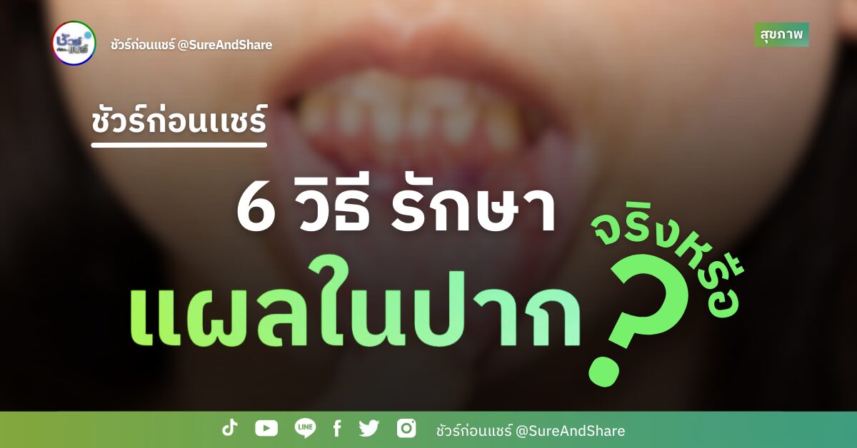 ดูเพิ่มเติมรายการ ชัวร์ก่อนแชร์ : 6 วิธี รักษาแผลในปาก ง่าย ๆ จริงหรือ ?