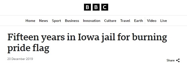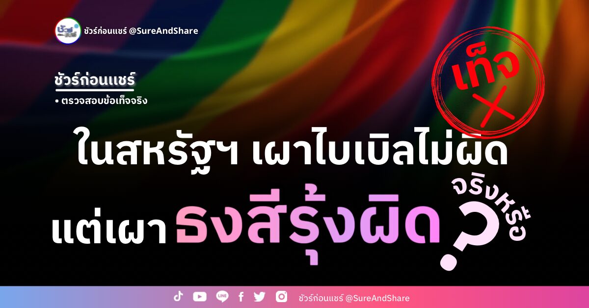 มีข้อความสร้างความเข้าใจผิดเผยแพร่ทางสื่อสังคมออนไลน์ในสหรัฐอเมริกา โดยอ้างว่ากระแสสนับสนุนผู้มีความหลากหลายทางเพศในสหรัฐฯ กำลังทำให้ Pride Flag หรือธงสีรุ้งของชาว LGBT ได้รับการปกป้องยิ่งกว่าคัมภีร์ไบเบิลของศาสนาคริสต์ เพราะขณะที่การเผาคัมภีร์ไบเบิลได้รับการปกป้องด้านเสรีภาพทางการแสดงออก แต่ผู้ที่เผาธงสีรุ้งของชาว LGBT กลับถูกมองว่าเป็นการกระทำที่ผิดกฎหมาย