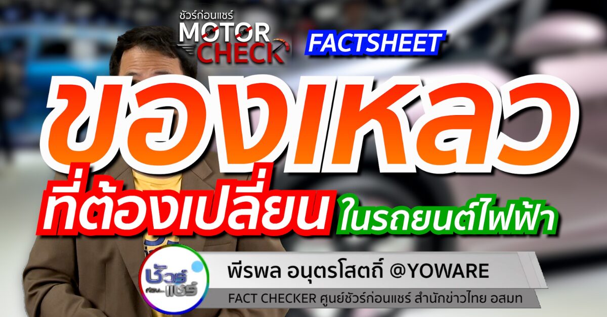 25 มิถุนายน 2567 – บนสังคมออนไลน์มีข้อสงสัยเกี่ยวกับของเหลวที่ใช้ในรถยนต์ไฟฟ้าว่า มีกี่ชนิด แต่ละชนิดควรดูแล และเปลี่ยนถ่ายอย่างไร ติดตามข้อเท็จจริงและคำแนะนำจากผู้เชี่ยวชาญใน ชัวร์ก่อนแชร์ MOTOR CHECK กับคุณพีรพล อนุตรโสตถิ์ จากศูนย์ชัวร์ก่อนแชร์