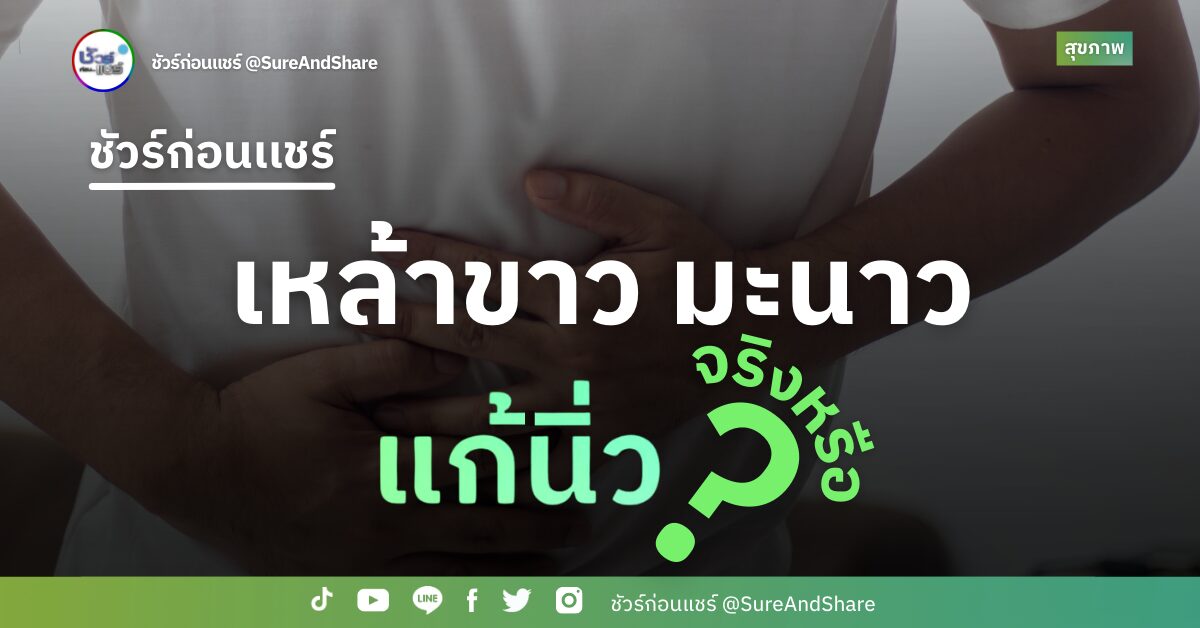 ดูเพิ่มเติมรายการ ชัวร์ก่อนแชร์ : เหล้าขาว มะนาว แก้นิ่ว จริงหรือ ?