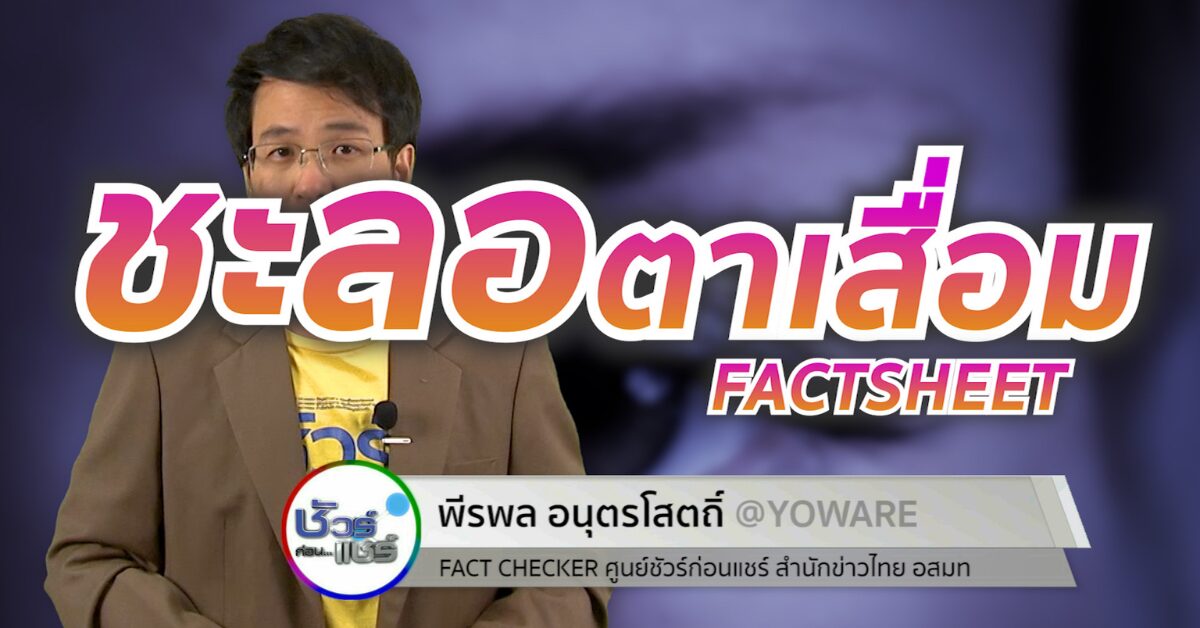 ตรวจสอบกับ พันโท นายแพทย์ ศีตธัช วงศ์กุลศิริ ประธานคณะทำงานฝ่ายวิชาการด้านส่งเสริมสุขภาพตาเพื่อสังคม ราชวิทยาลัยจักษุแพทย์แห่งประเทศไทย