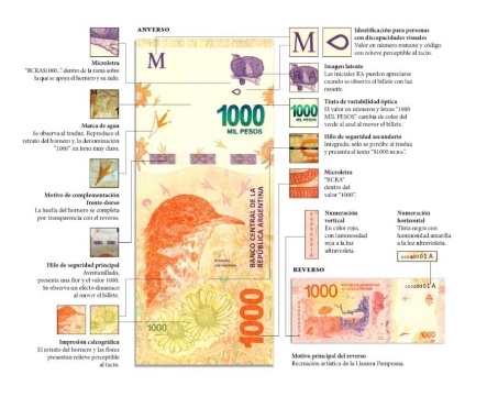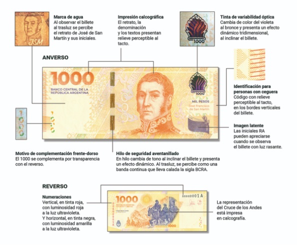 ธนบัตร 1,000 เปโซรุ่นที่ 5 ที่ประกาศใช้เมื่อวันที่ 14 กรกฎาคม 2023 เป็นภาพเหมือนของ โฮเซ เดอ ซาน มาร์ติน นายพลชาวอาร์เจนตินา ผู้นำสงครามประกาศเอกราชของประเทศอาร์เจนตินา ชิลี และเปรู จากการปกครองของประเทศสเปนเมื่อช่วงต้นศตวรรษที่ 19