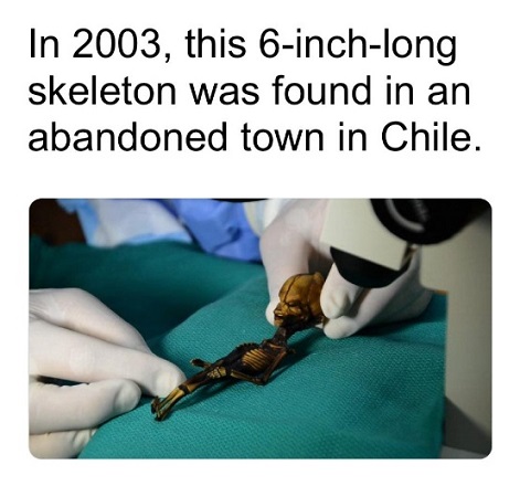 มีข้อมูลสร้างความเข้าใจผิดเผยแพร่ทาง Instagram ในต่างประเทศ อ้างว่าหนึ่งในหลักฐานการค้นพบมนุษย์ต่างดาวบนโลกมนุษย์คือ Atacama Skeleton ซากสิ่งมีชีวิตคล้ายมนุษย์ต่างดาวในประเทศชิลี เนื่องจากมีโครงสร้างศีรษะเล็กเท่าเด็กทารก แต่กระดูกมีอายุเทียบเท่าเด็ก 8 ปี จึงเชื่อว่าโครงสร้างดังกล่าวน่าจะเป็นซากของมนุษย์ต่างดาว