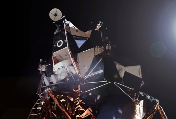 เมื่อยานลงจอดบนดวงจันทร์แตะพื้นผิวดวงจันทร์ Apollo lunar television camera ได้ถูกติดตั้งที่ด้านนอกของตัวยาน โดยหันเลนส์กล้องไปที่บันได เพื่อจับวินาทีที่ นีล อาร์มสตรอง ก้าวเท้าลงสู่ดวงจันทร์ได้สำเร็จ
