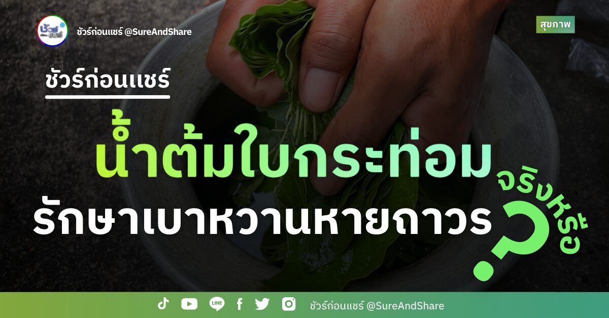 ดูเพิ่มเติมรายการ ชัวร์ก่อนแชร์ : น้ำต้มใบกระท่อม รักษาเบาหวานหายแบบถาวร จริงหรือ ?