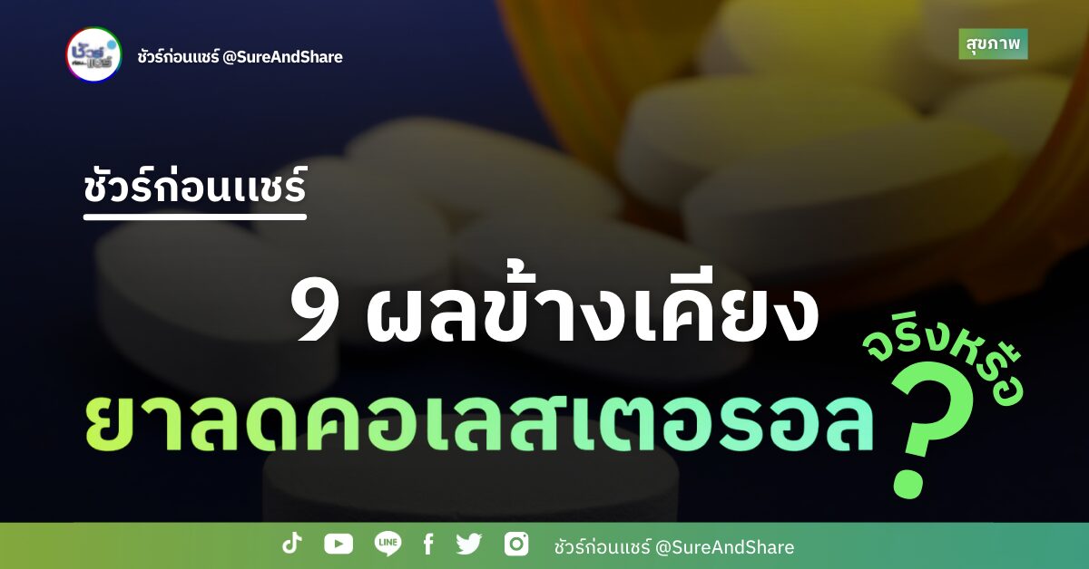 บนสื่อสังคมออนไลน์มีการแชร์ 9 ผลข้างเคียงของยาลดคอเลสเตอรอล มีตั้งแต่อาจทำให้ไตวายไปจนถึงเป็นมะเร็ง จริงหรือ ?