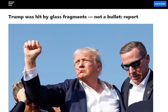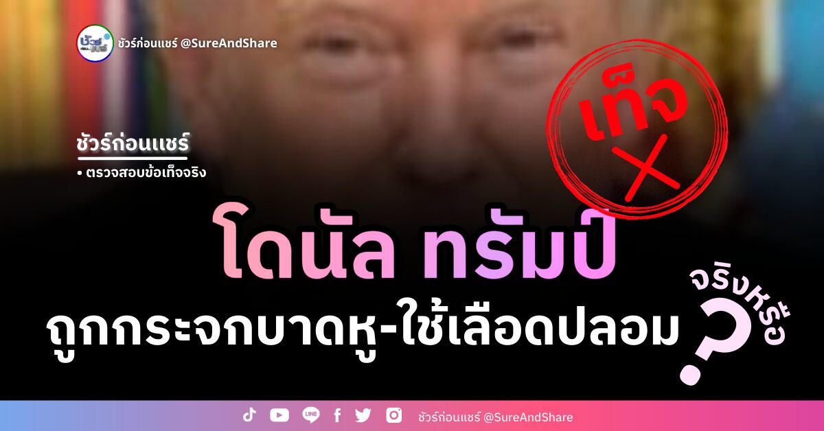มีข้อมูลเท็จเผยแพร่ทางสื่อสังคมออนไลน์และเว็บไซต์ในต่างประเทศ โดยอ้างว่า สาเหตุที่ทำให้ โดนัลด์ ทรัมป์ อดีตประธานาธิบดีสหรัฐฯ ได้รับบาดเจ็บที่หูข้างขวา ในเหตุพยายามลอบสังหารเมื่อวันที่ 13 กรกฎาคม 2024 ไม่ได้เกิดจากกระสุนปืนตามที่เข้าใจ แต่เป็นเศษกระจกจากเครื่องบอกบท หรือ Teleprompter ที่กระเด็นมาโดน โดนัลด์ ทรัมป์ หลังถูกกระสุนปืนยิงใส่อีกที
