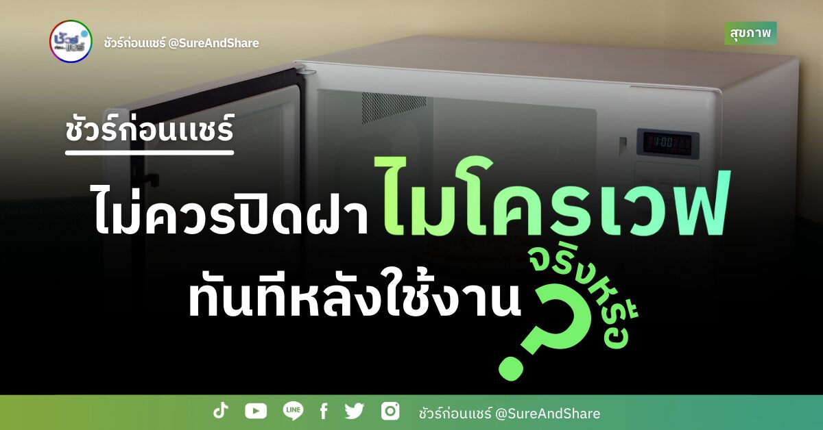 ดูเพิ่มเติมรายการ ชัวร์ก่อนแชร์ : ไม่ควรปิดฝาไมโครเวฟทันทีหลังใช้งาน จริงหรือ ?