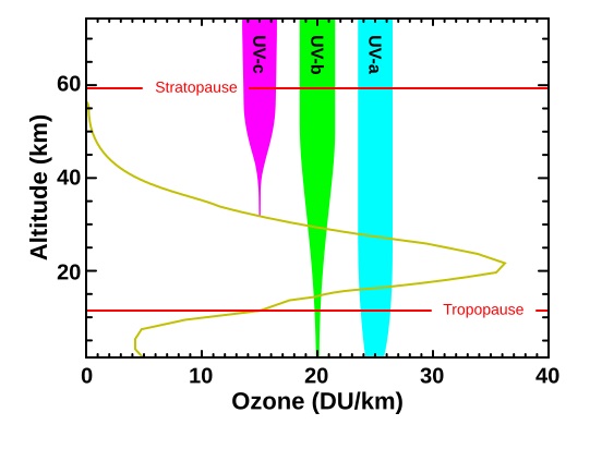 รังสี UVC ถูกดูดซับในชั้นโอโซนและส่องมาถึงผิวโลกในปริมาณน้อยมาก