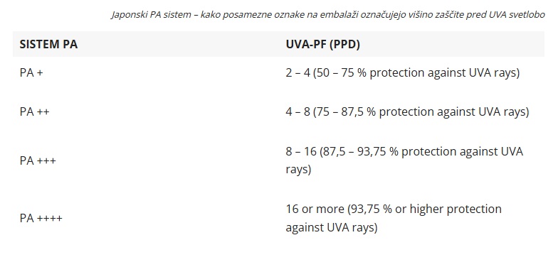 PA คือระดับการป้องกันรังสี UVA มีค่าตั้งแต่ + จนถึง ++++ ยิ่งค่า PA สูงระดับการป้องกันผิวหนังจากรังสี UVA จะยิ่งมีประสิทธิภาพ