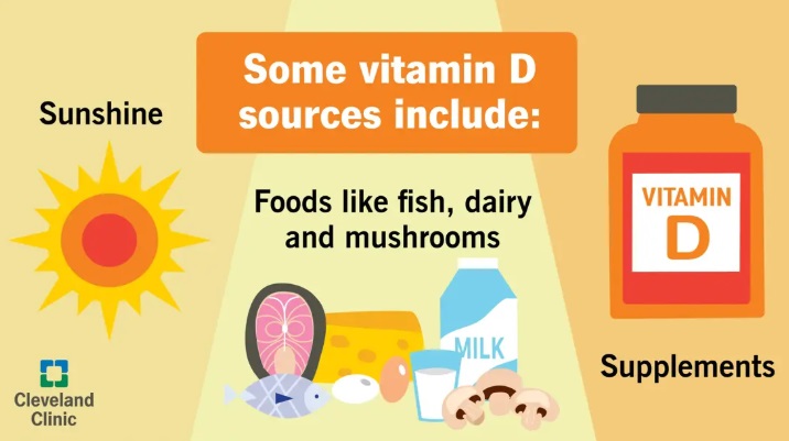 รองลงมาคือวิตามินดีจากไข่แดง ตับวัว และเนยแข็ง รวมถึงการรับวิตามินดีในรูปแบบวิตามินและอาหารเสริมวิตามินดี