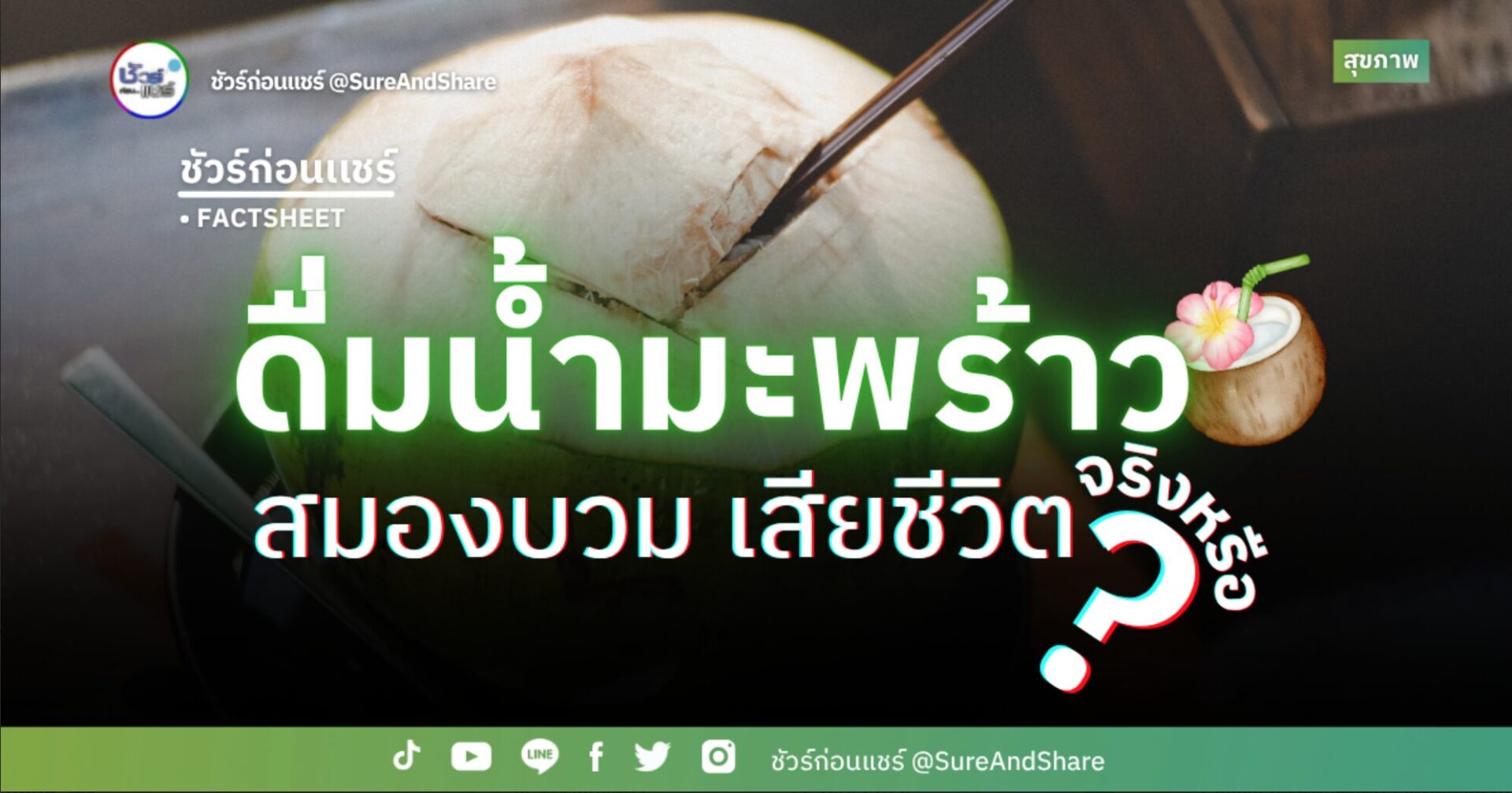 บนสื่อสังคมออนไลน์มีการแชร์ข่าวที่มีคนดื่มน้ำมะพร้าวเพียงอึกเดียว เกิดอาการสมองบวม และเสียชีวิตใน 26 ชั่วโมง จริงหรือ ?