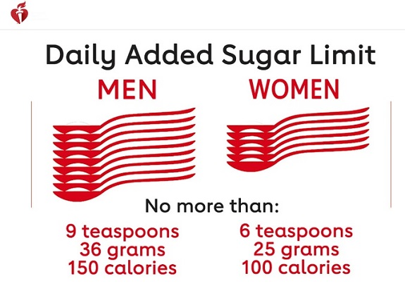 ส่วนสมาคมโรคหัวใจแห่งอเมริกา (AHA) กำหนดให้ผู้ชายได้รับน้ำตาลไม่เกิน 9 ช้อนชาต่อวัน และผู้หญิงได้รับน้ำตาลไม่เกิน 6 ช้อนชาต่อวัน