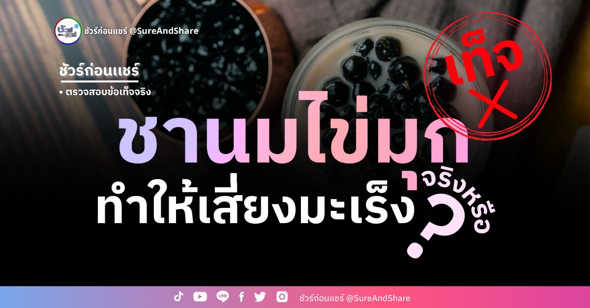 มีข้อมูลเท็จเกี่ยวกับชานมไข่มุกเผยแพร่ทางสื่อสังคมออนไลน์ในต่างประเทศ โดยอ้างงานวิจัยที่พบสารก่อมะเร็งในชานมไข่มุก นำไปสู่การอ้างว่าการดื่มชานมไข่มุกอาจเพิ่มความเสี่ยงการเป็นมะเร็ง