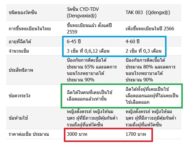3.ปัจจุบันมีวัคซีนป้องกันไข้เลือดออก 2 ชนิด