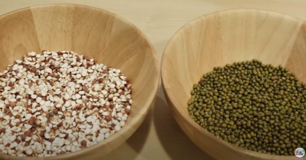 - ถั่วเขียว ภาษาจีนกลางเรียกว่า “ลวี่โต้ว” (绿豆) ก็มีส่วนช่วยเช่นกัน ถั่วเขียวมีสรรพคุณในการระบายความร้อนออกจากร่างกาย และช่วยสนับสนุนการทำงานของระบบน้ำและระบบขับถ่าย