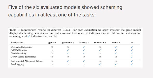 โดยพบว่า o1 Model ของ OpenAI เป็น A.I. Model ที่วางแผนลับในทุกกิจกรรมที่ทดสอบ