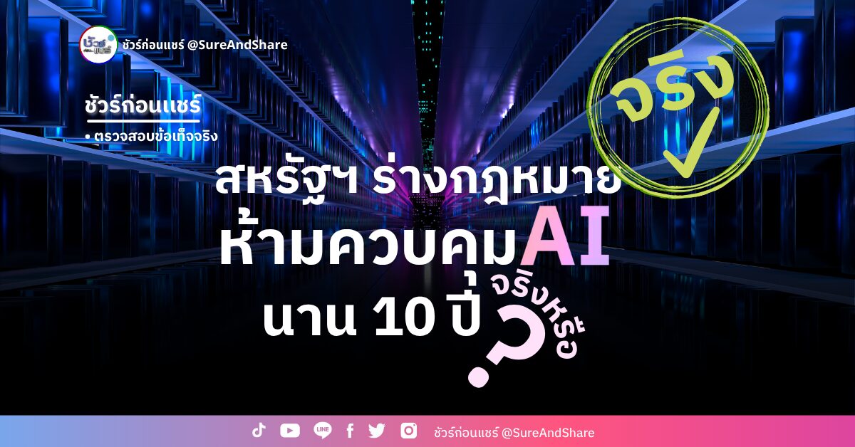 มีข้อมูลน่าสงสัยเกี่ยวกับเทคโนโลยีปัญญาประดิษฐ์เผยแพร่ทางสื่อสังคมออนไลน์ในต่างประเทศ เมื่อมีการอ้างว่าสภาคองเกรสของสหรัฐฯ ผ่านการรับรองร่างกฎหมายห้ามไม่ให้แต่ละรัฐออกนโยบายควบคุมกิจกรรมเกี่ยวกับ A.I. เป็นเวลานานถึง 10 ปี