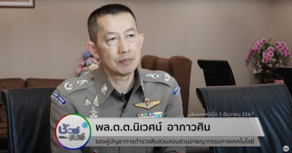 ศูนย์ชัวร์ก่อนแชร์ตรวจสอบกับ พล.ต.ต.นิเวศน์ อาภาวศิน รองผู้บัญชาการตำรวจสืบสวนสอบสวนอาชญากรรมทางเทคโนโลยี (บช.สอท.) สำนักงานตำรวจแห่งชาติ (สัมภาษณ์เมื่อ 3 ธันวาคม 2567)