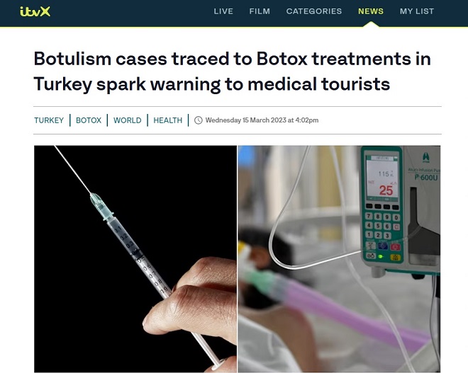 ส่วนปี 2023 พบผู้ป่วยโรคโบทูลิซึมในสหราชอาณาจักรจำนวน 67 ราย สืบประวัติพบว่าไปเข้ารับการลดน้ำหนักด้วยการฉีดโบท็อกซ์ที่โรงพยาบาลเอกชนแห่งหนึ่งในประเทศตุรกี